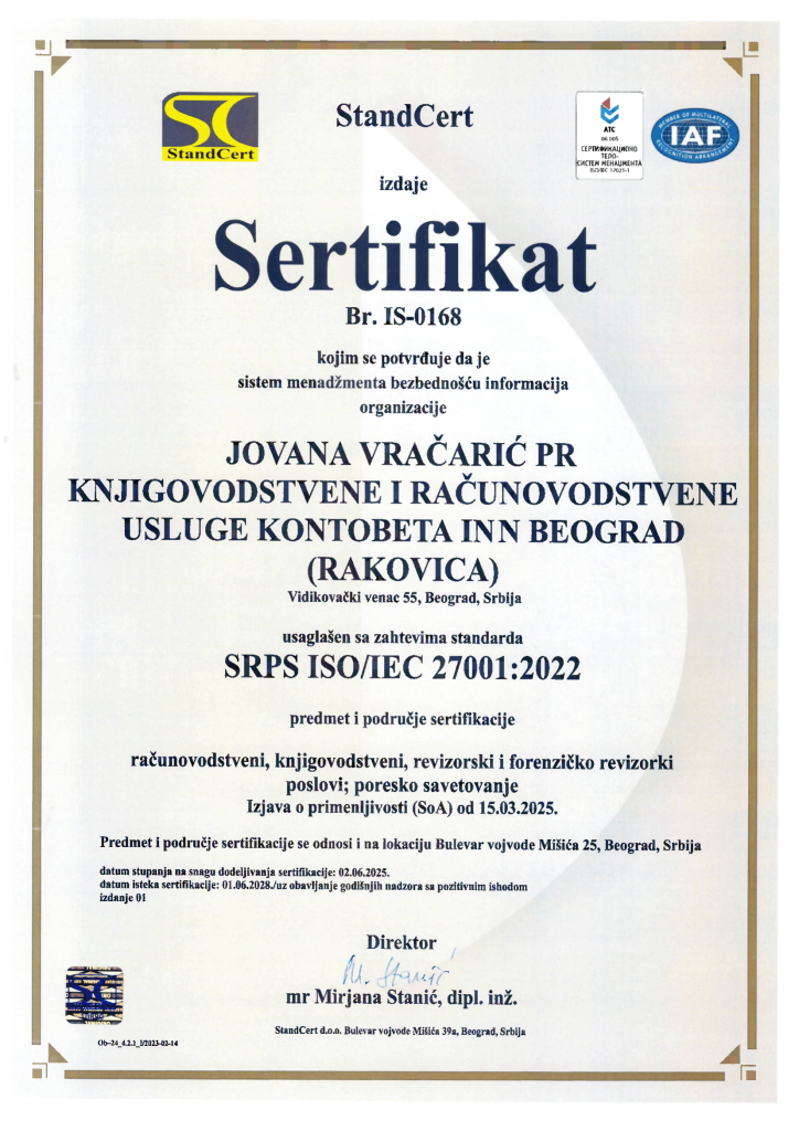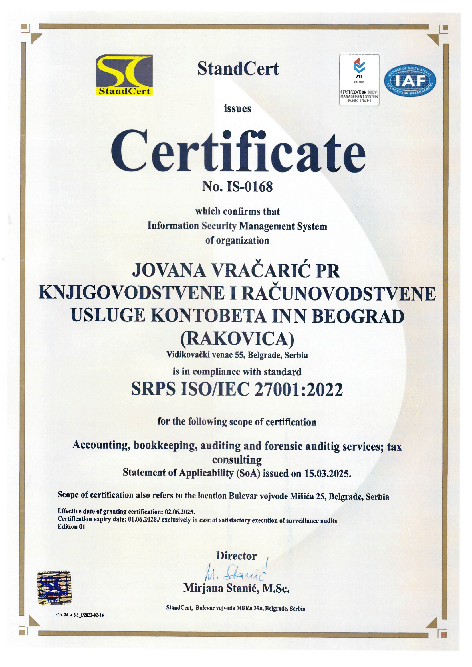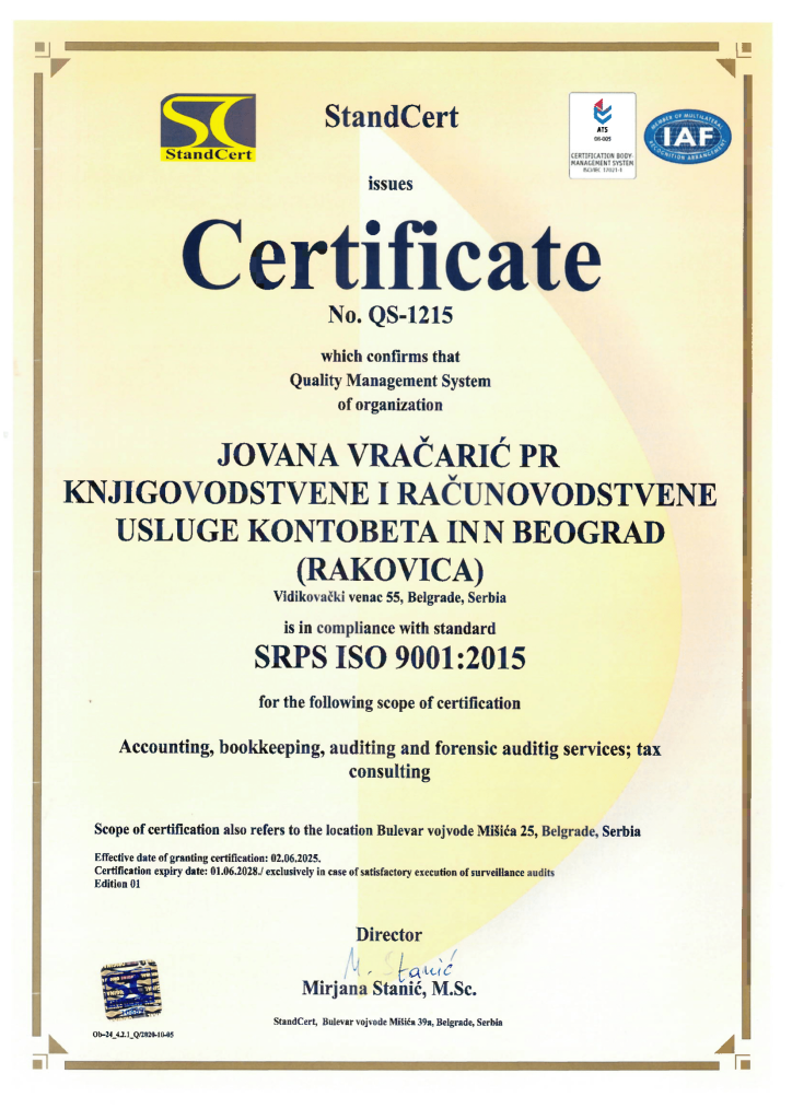 Izuzetno profesionalni i savršeno pouzdani! Ove reči na pravi način opisuju sve ono što smo kao firma očekivali od saradnje sa KontoBeta INN, a dobili smo i mnogo više: brze povratne informacije, angažovanje i na poslovima koje nisu bile sastavni deo ugovora, prosleđivanje informacija od značaja za bolji rast naše kompanije.... KontoBeta INN je naša srdačna preporuka za sve naše kooperanate i prijatelje!