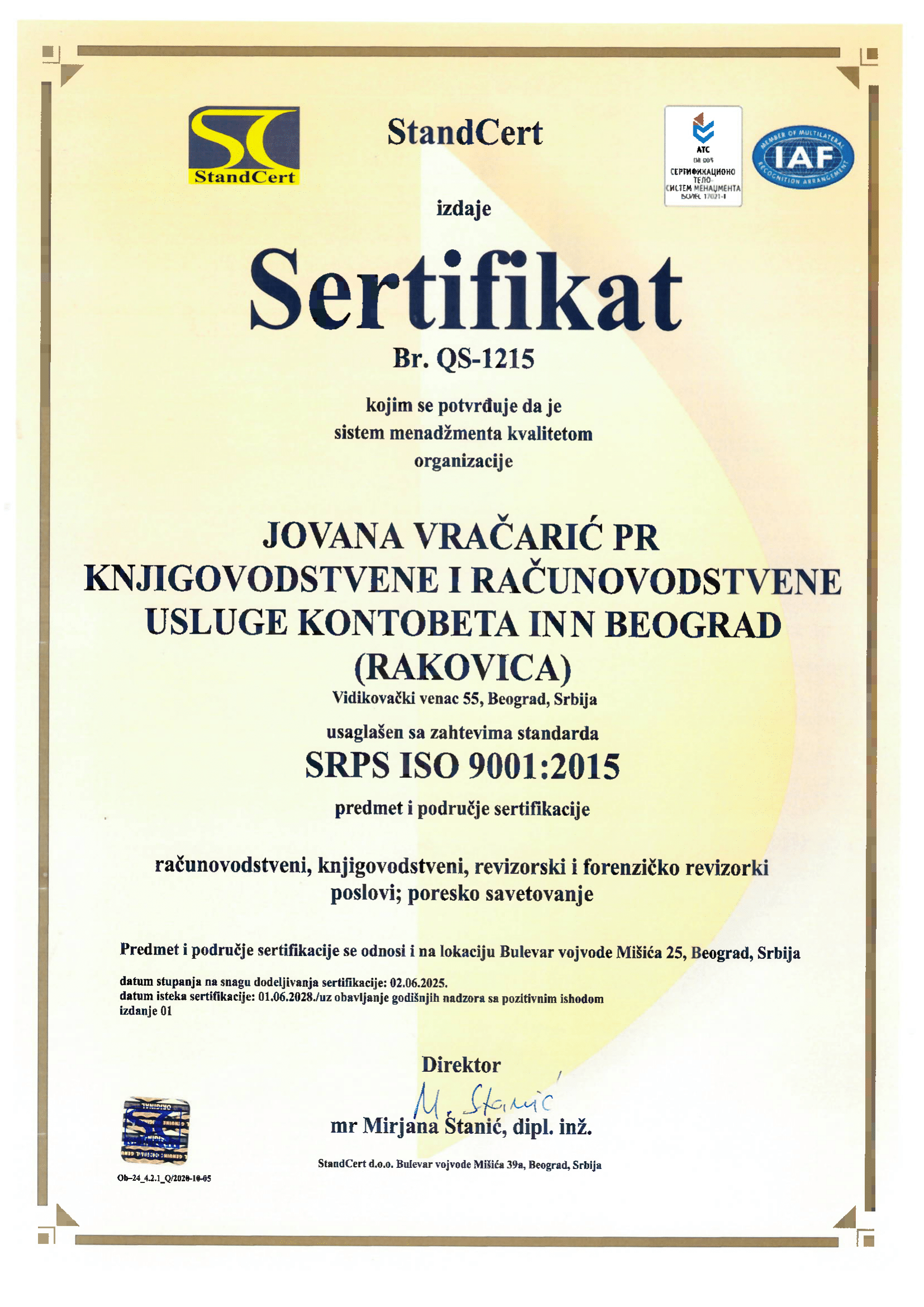 Sa Kontobetom saradjujem od osnivanja naše firme, odnosno od priprema za njeno osnivanje. Od samog početka saradnje impresionirani smo izuzetnom stručnošću i poznavanju poslovanja i zakona i u našem poslovanju u ogromnoj meri se oslanjamo na saradnju sa Kontobetom. Njihove usluge godinama preporučujemo svima koji su se interesovali za pomoć kog knjigovodstvenih, poslovnih i pravnih saveta. Vredni, pouzdani, preduzimljivi, aktivni, stručni, dostupni… da navedem samo neke od odlika naših saradnika iz Kontobete.